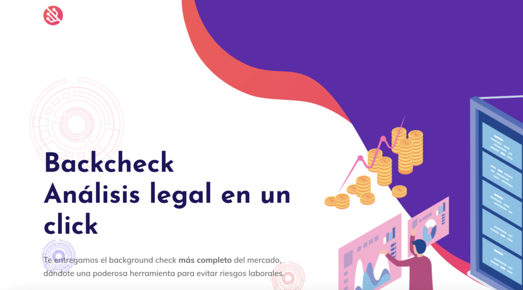 Análisis legales automatizados para antecedentes laborales, lo que comúnmente se conoce como background check. La plataforma compila y procesa información pública disponible en portales de transparencia y el sistema judicial chileno para entregar un informe predictivo sobre posibles riesgos asociados a futuros colaboradores. Operan en la industria de HRTech (tecnología para RRHH) y ofrecen una solución B2B para facilitar la toma de decisiones basada en datos legales públicos.